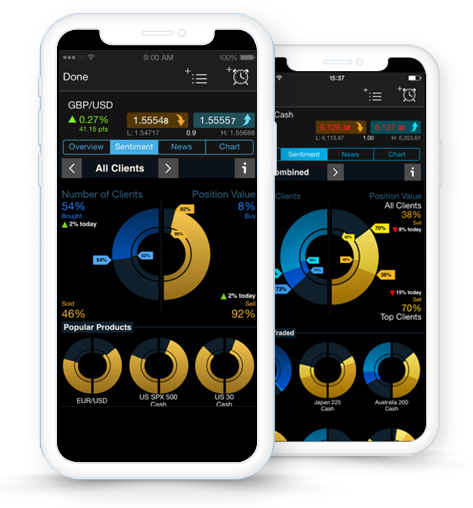 Updated every minute, the client sentiment charts on our iPhone trading app show how other CMC Markets clients are positioned in a particular product, including their position value as a percentage. You can sort by ‘all’ or ‘top’ clients and compare positions, providing unique insight into trader behaviour.